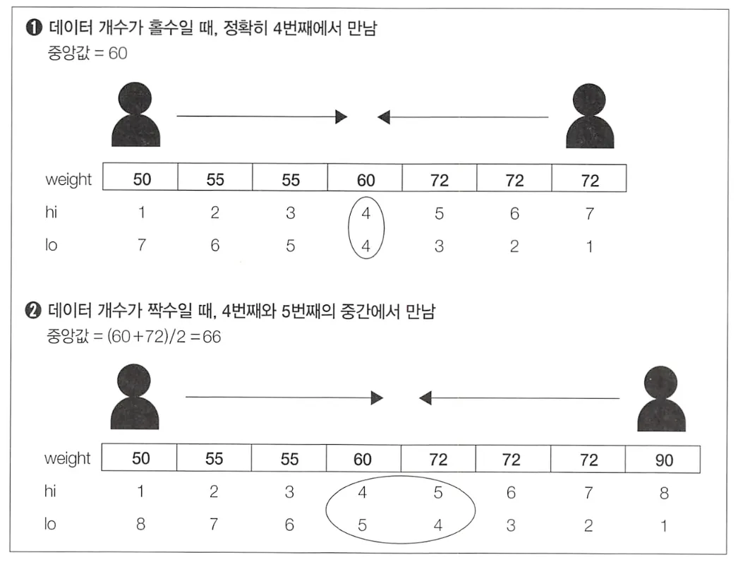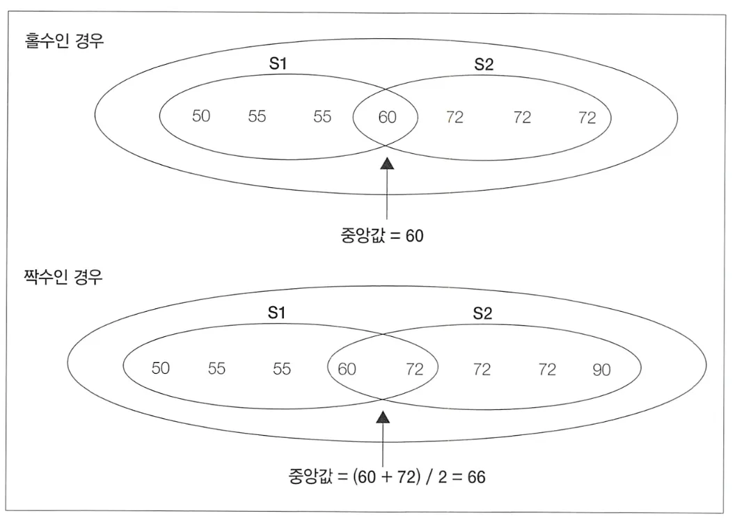 짝수개 레코드, 중앙값 = 66 (중앙값 두 개의 평균)