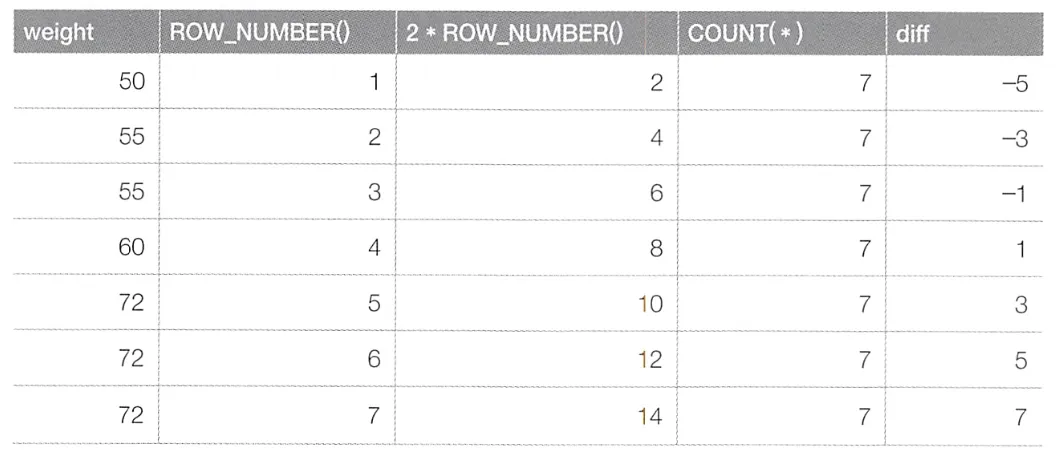 2 * ROW_NUMBER() OVER(ORDER BY weight)