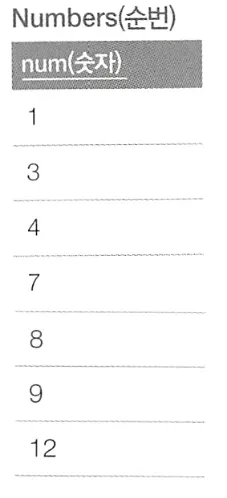 위의 Numbers 테이블에서 아래와 같은 시퀀스를 구해보자.