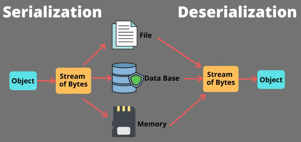 // 객체를 직렬화하여 바이트 스트림으로 변환 후 파일에 저장