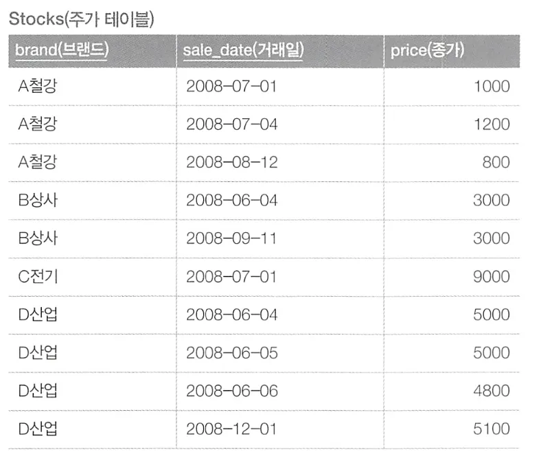 상관 서브쿼리로 인해 Stocks 테이블에 여러 번 접근이 발생하는 것을 알 수 있다.