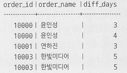 이와 같은 두 개의 테이블에서 주문일(order_date)과 상품의 배송 예정일(delivery_date)의 차이를 구해 3일 이상이라면 주문자에게 배송 주문이 늦어지고 있다고 연락하고자 한다.