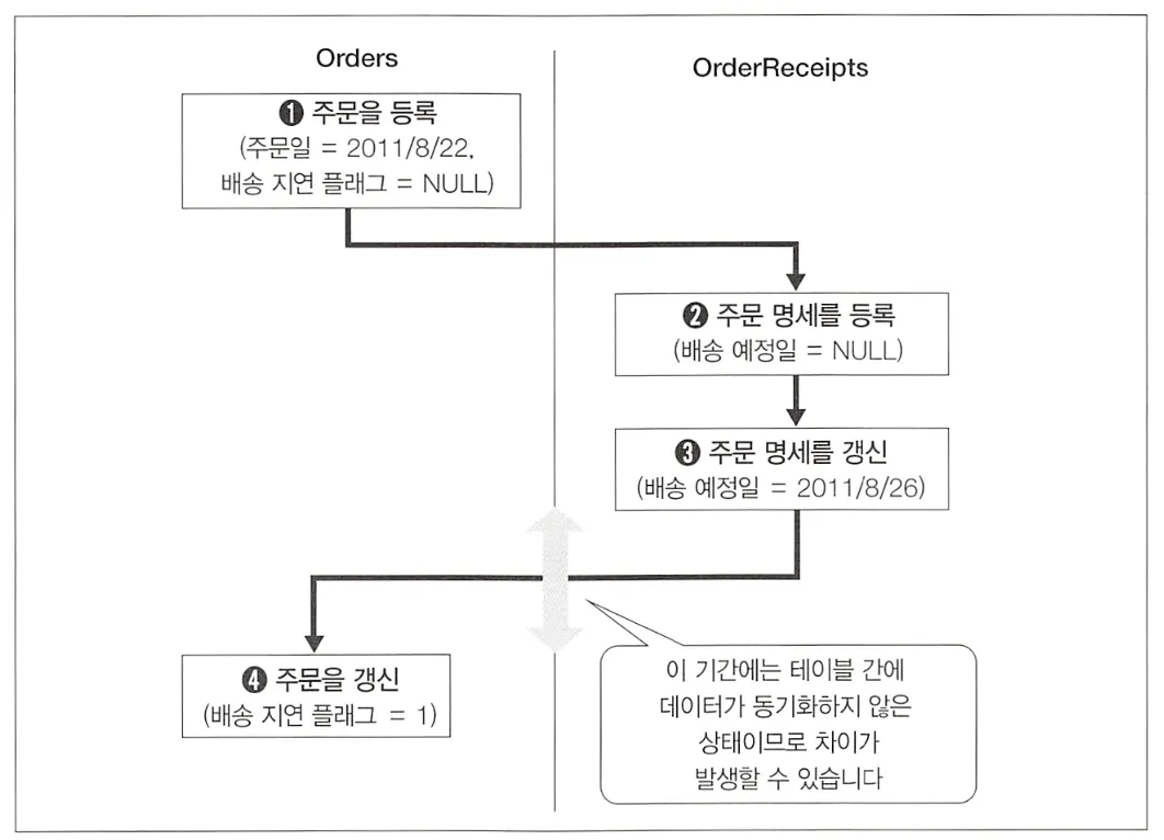 모델 갱신을 사용하면 추가적으로 Orders 테이블에 배송 지연 플래그 필드에 값을 넣는 갱신 처리가 필요하다. 테이블에 등록할 때 값이 정해져있다면 상관없지만, 등록 할 때 배송 예정일이 정해져 있지 않다면 갱신 비용이 많이 올라가게 된다.