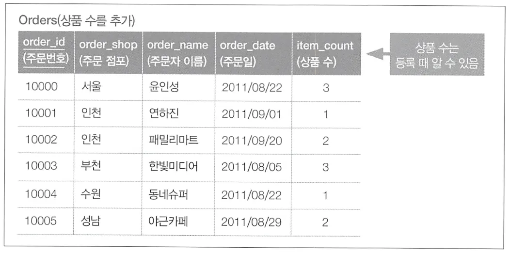 Orders 테이블에 상품 수라는 정보를 추가해 모델을 갱신하는 방법도 있다.