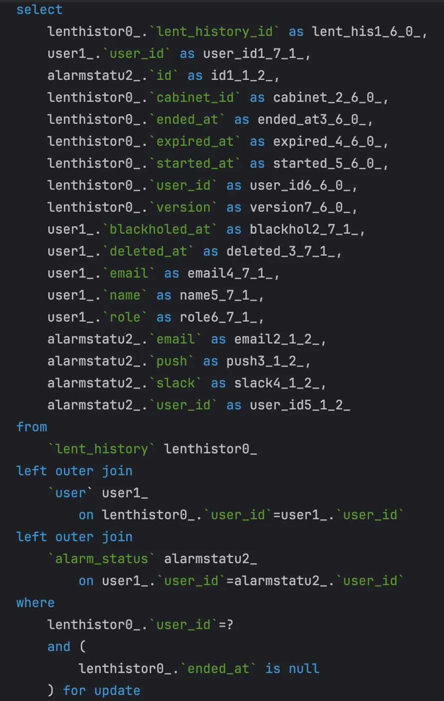 Cabi에 알람 기능이 추가되면서, AlarmStatus 테이블이 새로 추가되었다. 현재 진행 중인 리팩토링 작업 후 점검 차원에서 각 기능별 동작을 확인하고 있었는데, 뜬금없는 N+1 문제가 터졌다.
