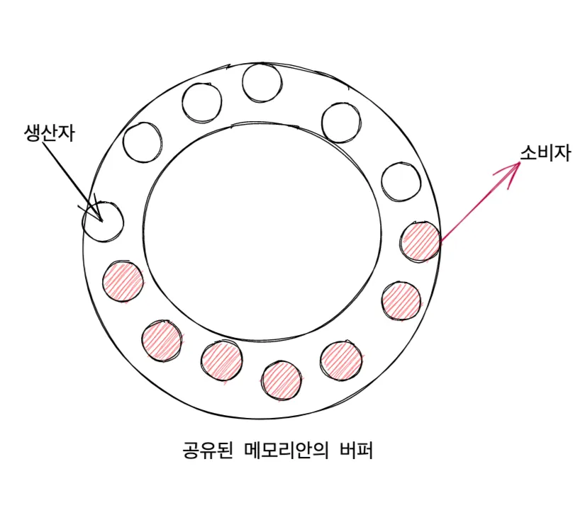 위 과정을 동기화 없이 진행하게 되면, 버퍼가 비어있는데 소비자가 데이터를 꺼내려하거나 버퍼가 가득 차있는데 데이터를 넣으려 하는 상황이 발생할 수 있다.
