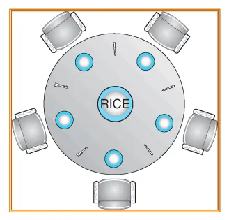 위와 같이 N명의 철학자가 원탁에 둘러앉아 있고, 각 철학자 사이에는 젓가락 1개씩 놓여있는 상황이다. 철학자가 식사를 하기 위해서는 자신의 좌우 양쪽 젓가락을 모두 집어야한다.