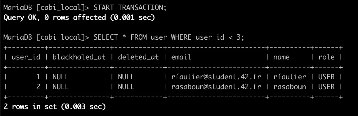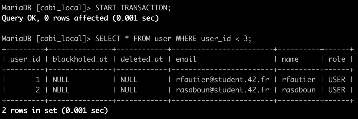 트랜잭션 없이 데이터를 조회하면 위와 같이 조회가 된다.