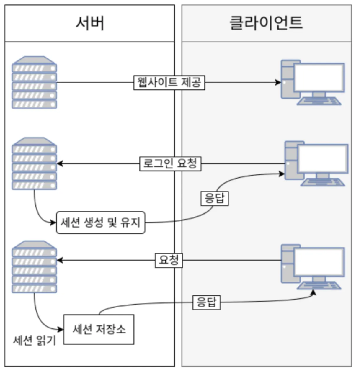 쿠키의 보안적인 이슈 때문에 비밀번호나 클라이언트의 민감한 인증 정보를 브라우저가 아닌 서버 측에 저장하고 관리하는 방식이다.