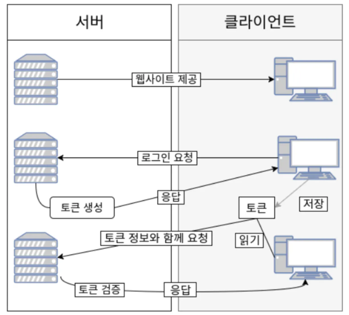 JWT는 인증에 필요한 정보들을 암호화시킨 JSON 토큰을 의미한다. JWT 토큰을 HTTP 헤더에 담아 서버가 클라이언트를 식별하는 방식이다.