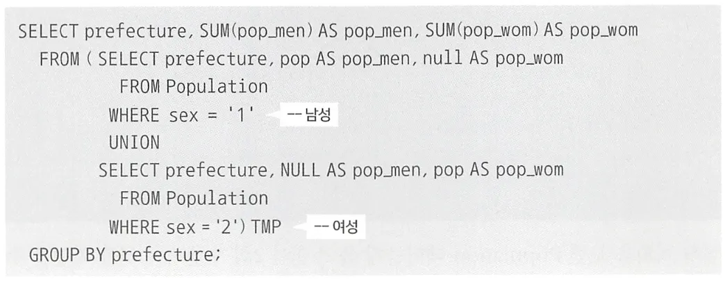 FROM 구에 테이블을 결합하여 CASE 식으로 원하는 결과를 구할 수 있지만, 그렇게하면 필요 없는 결합이 발생해 성능이 저하된다(UNION은 저하 없음).