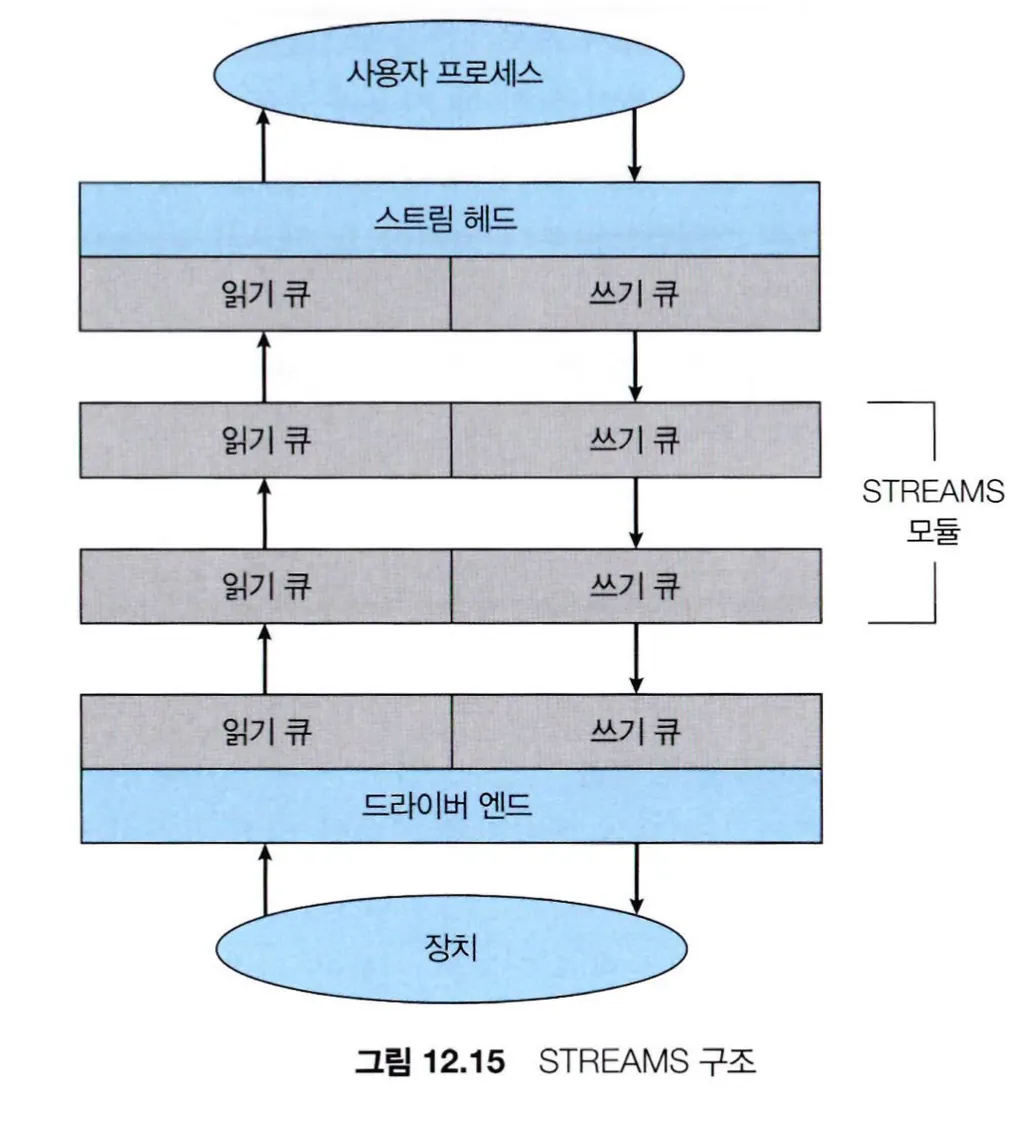 STREAMS는 UNIX에서 사용되는 기법인데, 응용 프로그램이 동적으로 드라이버 코드의 파이프 라인을 조립할 수 있도록 한다. 스트림은 디바이스 드라이버와 사용자 레벨 프로세스 사이의 완전한 양방향 연결을 말한다.