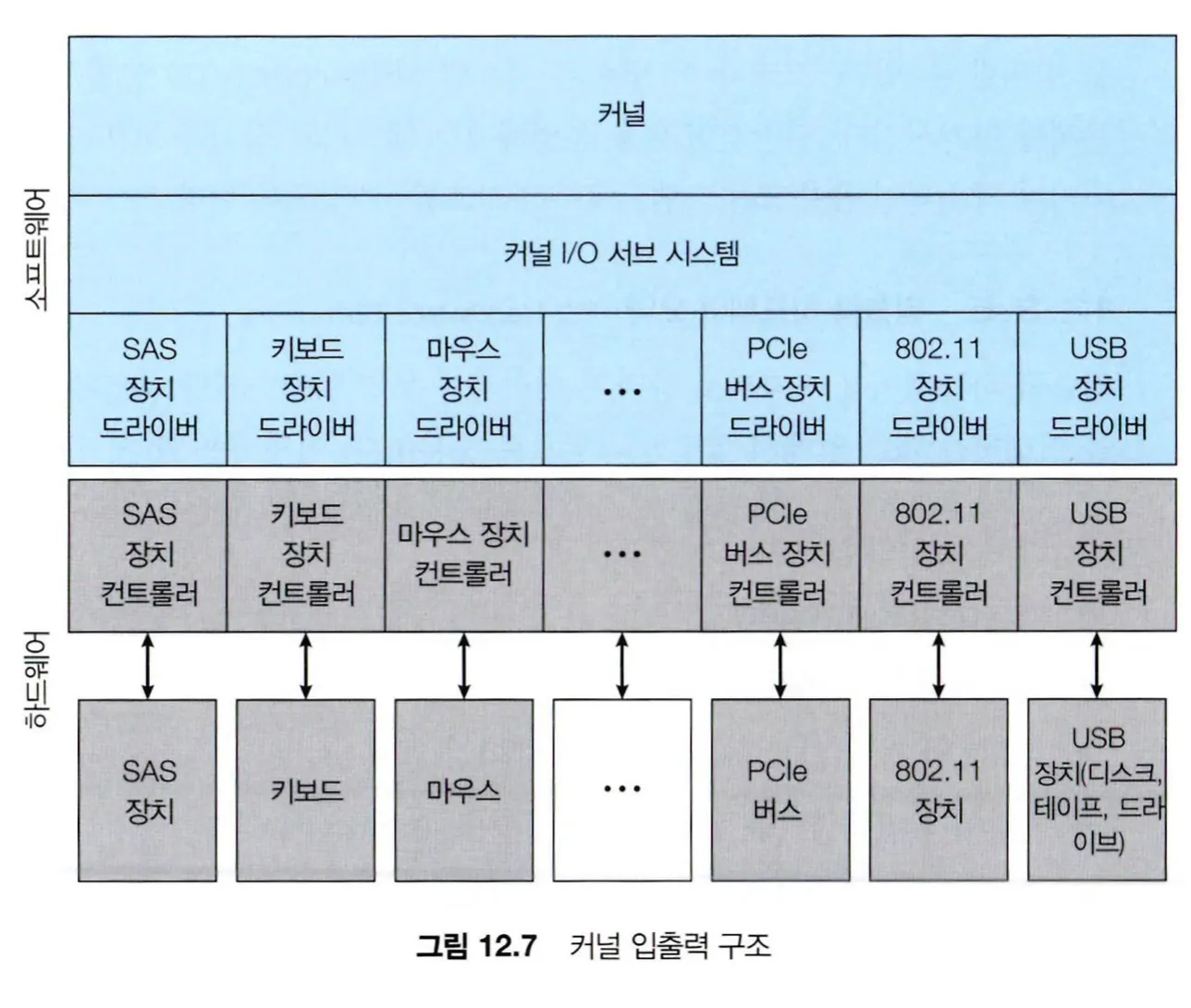 장치 드라이버라 불리는 커널 내의 모듈들은 각 입출력 장치들을 추상화하여 인터페이스의 표준 함수들을 내부적으로 수행한다. 이 장치 드라이버 계층(layer)은 여러 입출력 하드웨어 간의 차이를 숨기고 간단한 표준 인터페이스로 보이도록 포장해서 상위의 커널 입출력 서브 시스템에 제공하는 역할을 한다.