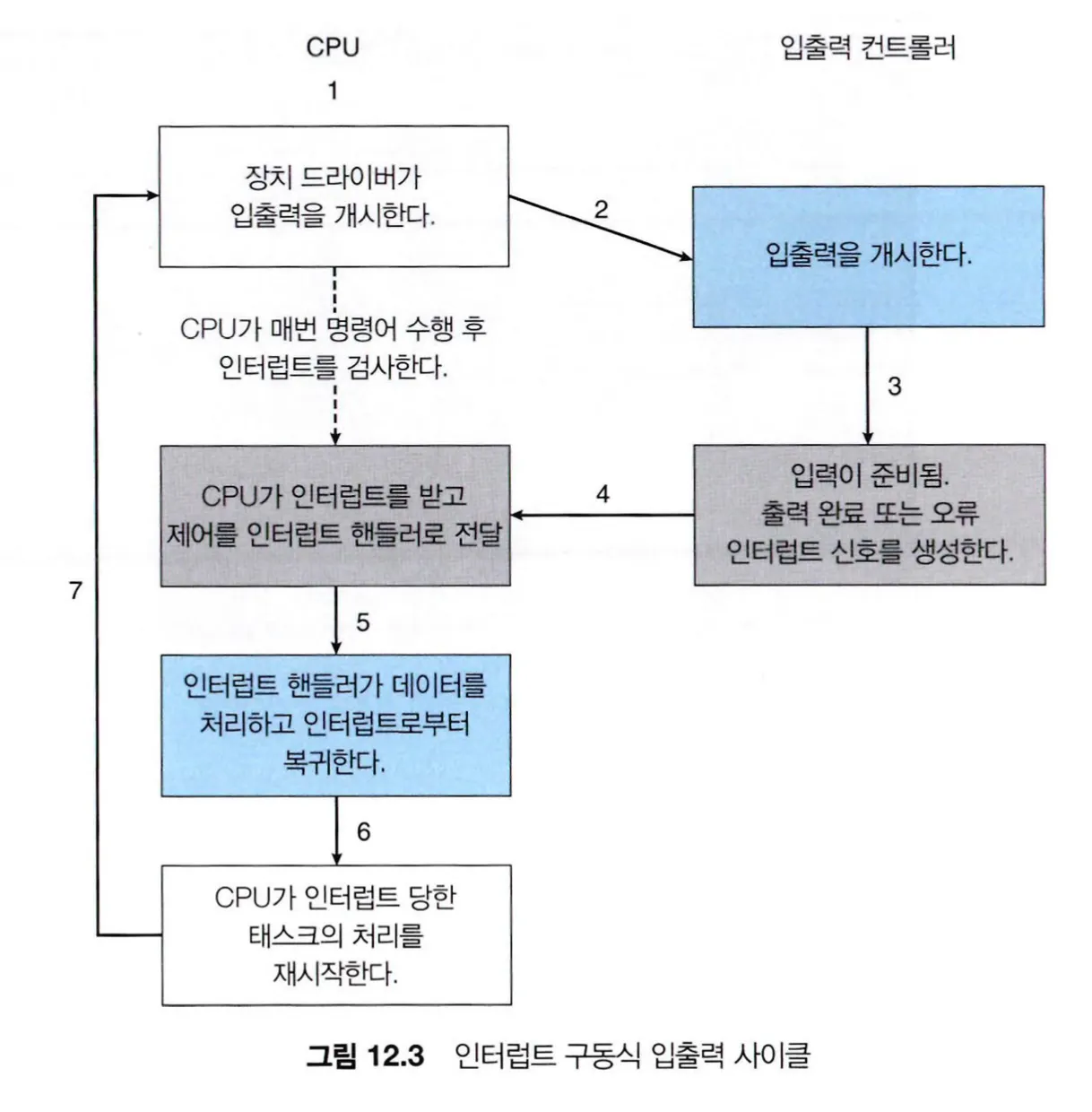 폴링은 CPU를 낭비하는 동작이지만, 만약 다른 테스크를 처리하게 넘겨버리면 직렬 포트나 키보드로부터 데이터가 계속 들어오는 상황에서 버퍼 오버플로우가 발생에 데이터 유실이 발생할 수 있다. 이를 개선하기 위한 기법이 컨트롤러가 자신의 상태가 바뀔 때 CPU에게 자신의 상태 변화를 알려주는 하드웨어 기법을 인터럽트(interrupt)라고 한다.
