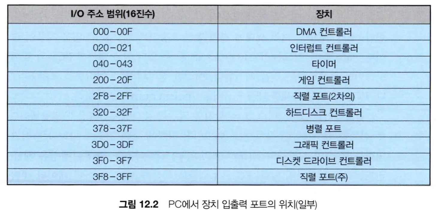 입출력 장치 컨트롤러는 보통 네 개의 레지터로 구성되어 있는데, 상태(status)와 제어(control), 입력(data-in), 출력(data-out) 레지스터들이다.