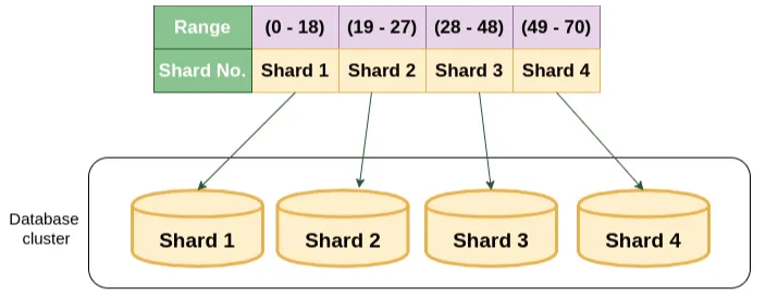 범위 샤딩 방식은 특정 컬럼의 값의 범위 기준으로 샤드에 라우트하는 방식이다. 구현이 간단하고 샤드의 추가 시 데이터 재정렬 비용이 발생하지 않지만, 일부 샤드에 데이터가 몰려 Hotspot이 될 수 있다.