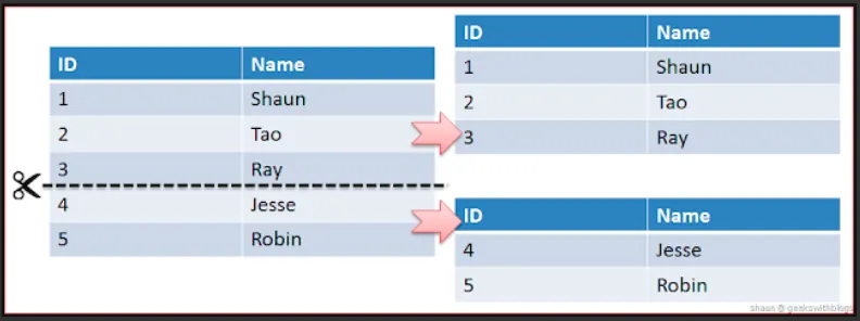 데이터베이스를 분할하는 방법으로는 크게 파티셔닝(Partitioning)과 샤딩(Sharding)이 있다.