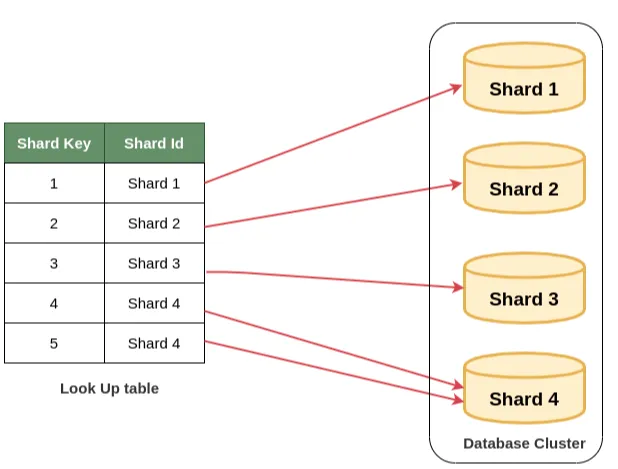 디렉토리 샤딩 방식은 별도의 조회 테이블을 사용해 샤드를라우팅하는 방식이다. 샤딩에 사용되는 시스템이나 알고리즘을 유연하게 적용할 수 있고 샤드를 추가하는 것도 용이하지만, 모든 읽기/쓰기 시 조회 테이블을 참고하기 때문에 오버헤드가 존재하며 조회 테이블이 단일 장애 포인트가 될 수 있다는 단점이 있다.