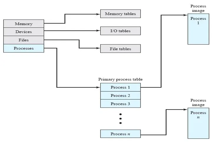 운영 체제는 메모리 테이블, 입출력 테이블, 파일 테이블, 프로세스 테이블을 가진다.