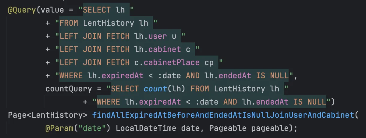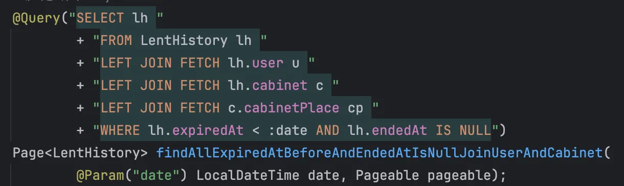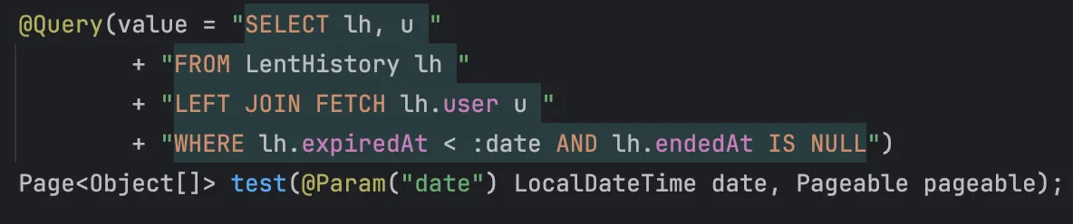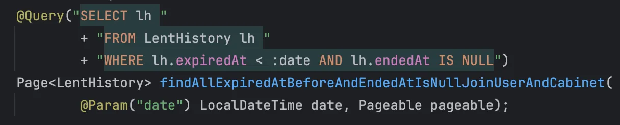 List<LentHistory> lentHistories = lentQueryService.findOverdueLentHistories(now, pageable);