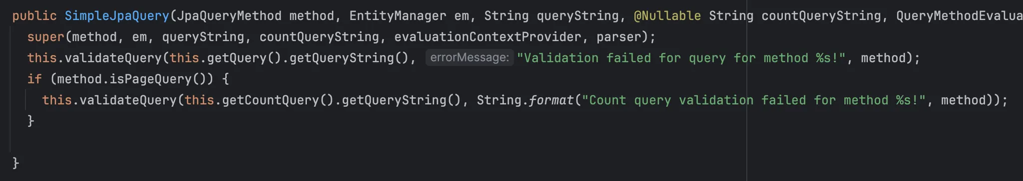 SimpleJpqQuery.class 파일의 SimpleJpaQuery를 생성하는 쪽을 보면, query를 검증 후 Paginantion이 있으면 CountQuery를 만들어 검증한다.