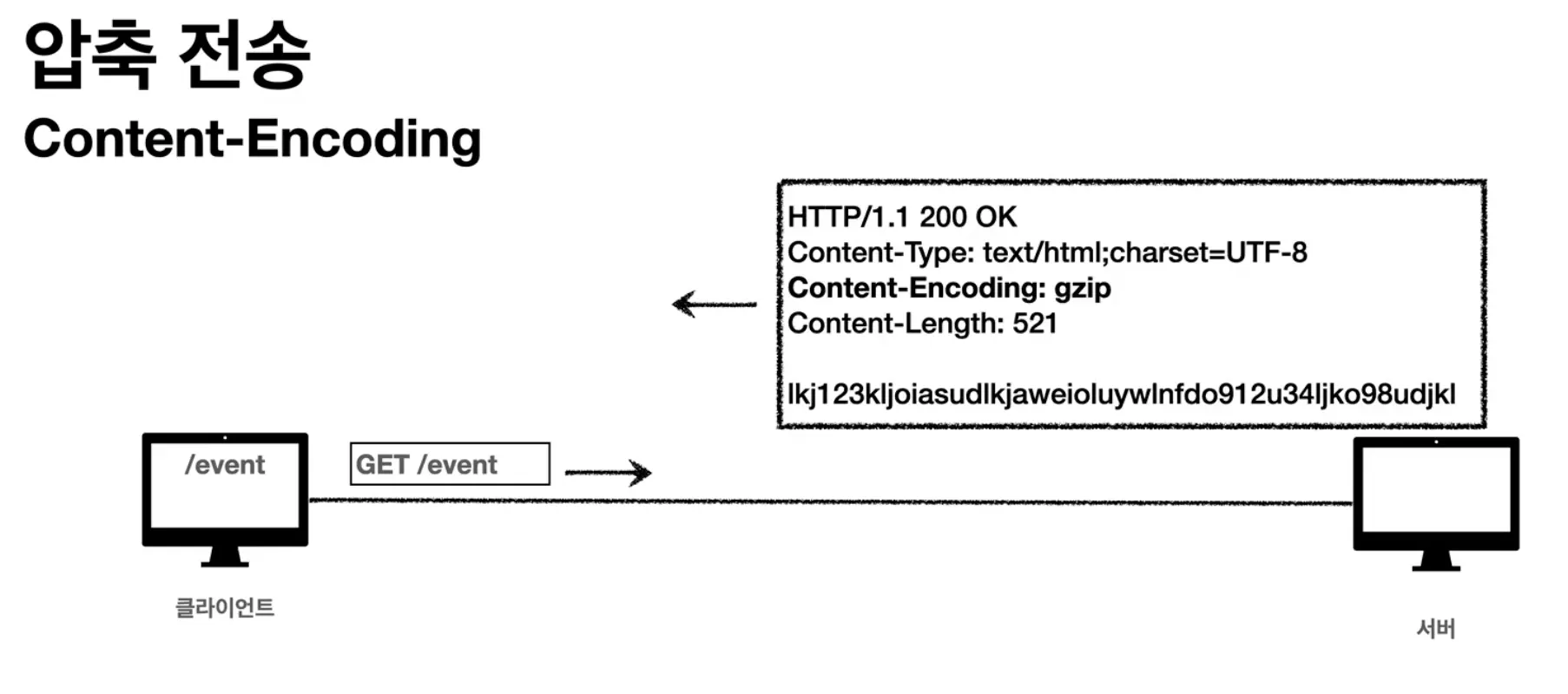 데이터를 읽는 쪽에서 인코딩 헤더를 읽고 압축을 해제한다.