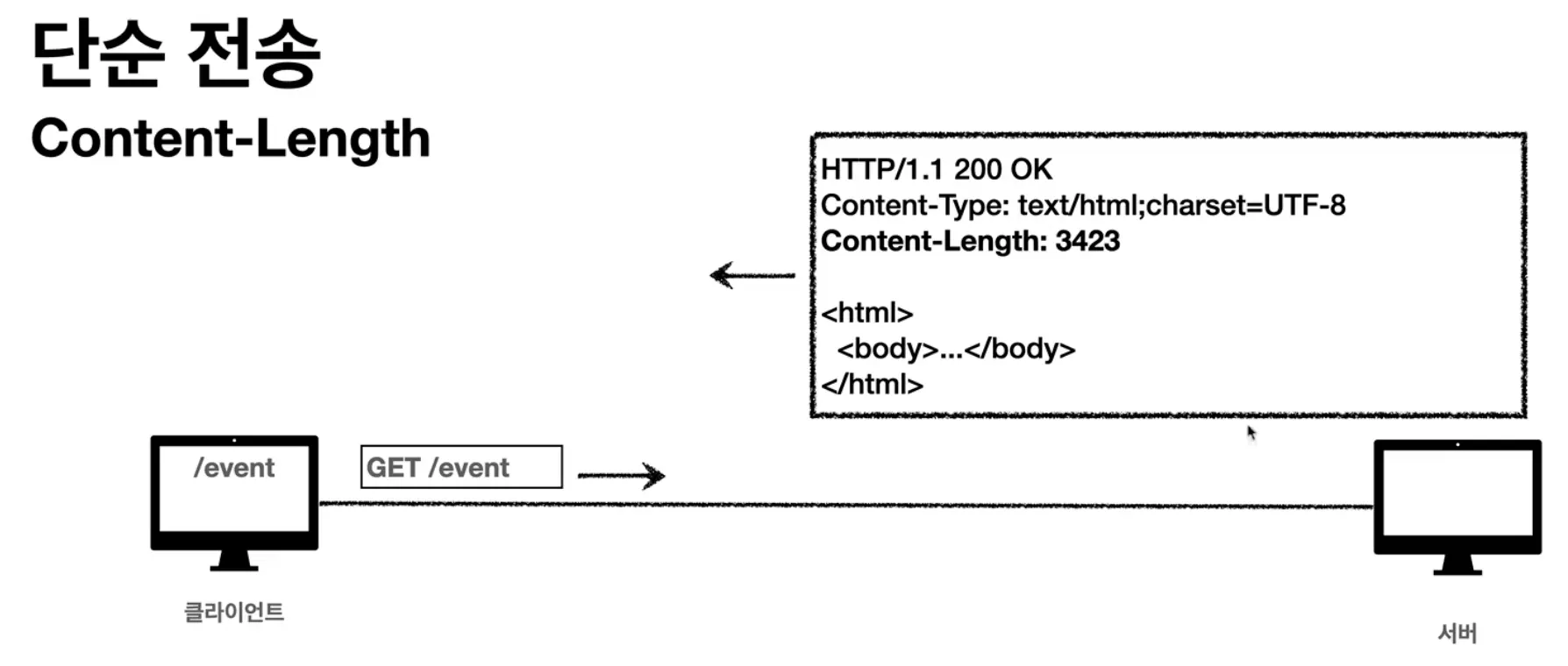 예시) Content-Type: text/html, Content-Lent: 3423