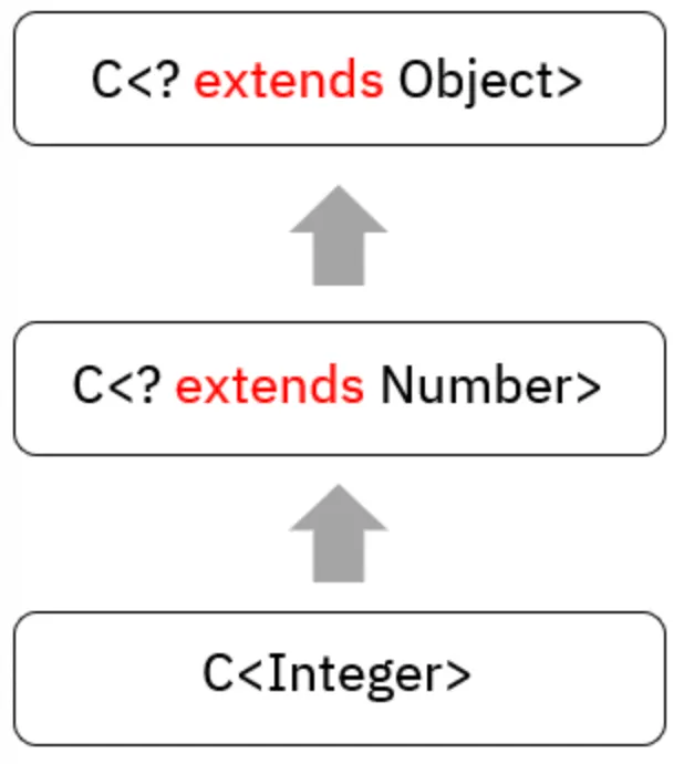 <? extends T> // Upper Bounded Wildcards : T 타입과 T 타입을 상속받는 자식 클래스 타입만 사용 가능
