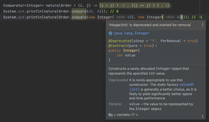 Comparator<Integer> naturalOrder = (i, j) -> (i < j) ? -1 : (i == j ? 0 : 1);